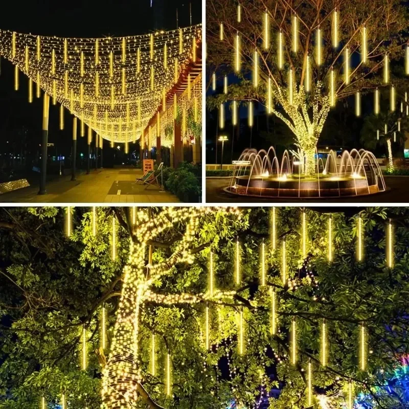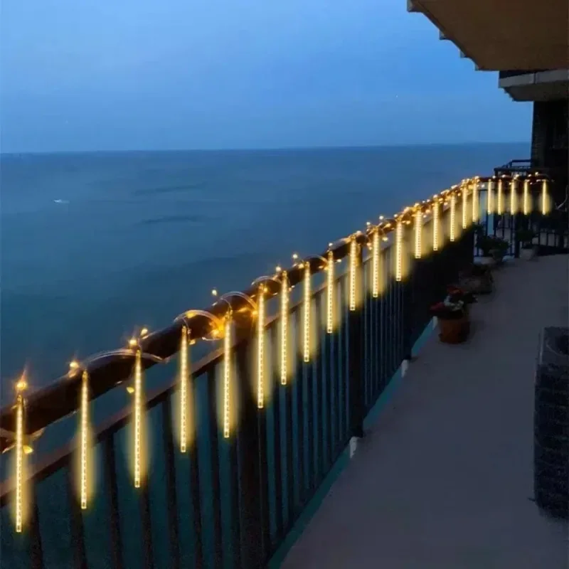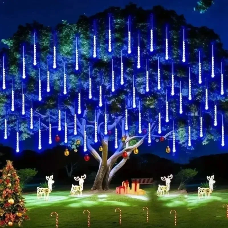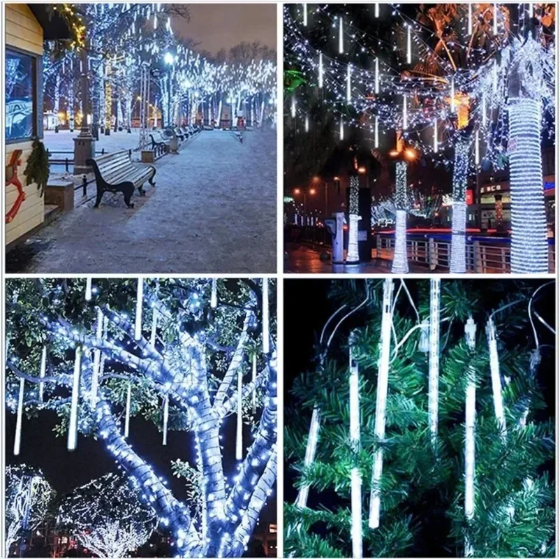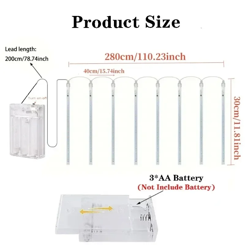 LED Meteor Shower String Lights AA Battery Powered Christmas Street Light Decor House Eave Indoor Wedding Scene Party Garden